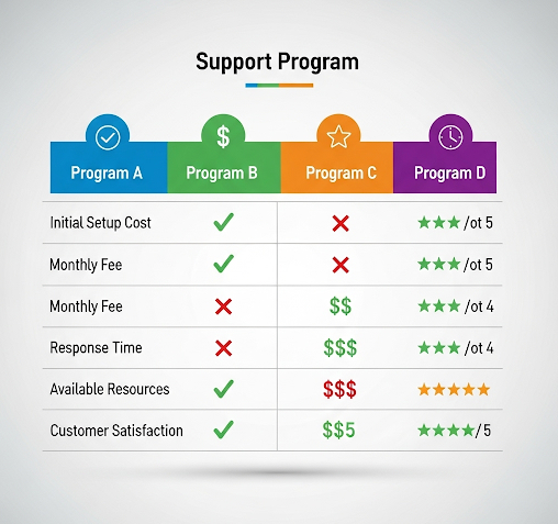 가장 많이 찾는 지원 프로그램들을 한눈에 비교해 보세요.
