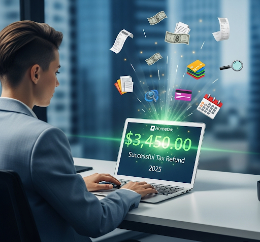 - **홈택스 접속**: 국세청 홈택스 웹사이트 또는 앱 접속.