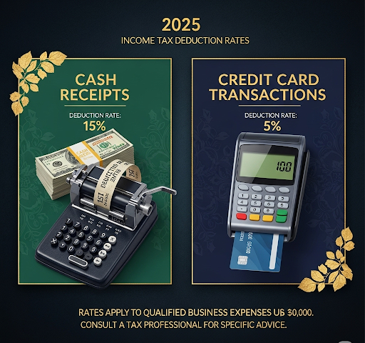 2025년 기준, 현금영수증과 신용카드의 소득공제율을 비교하는 이미지입니다.